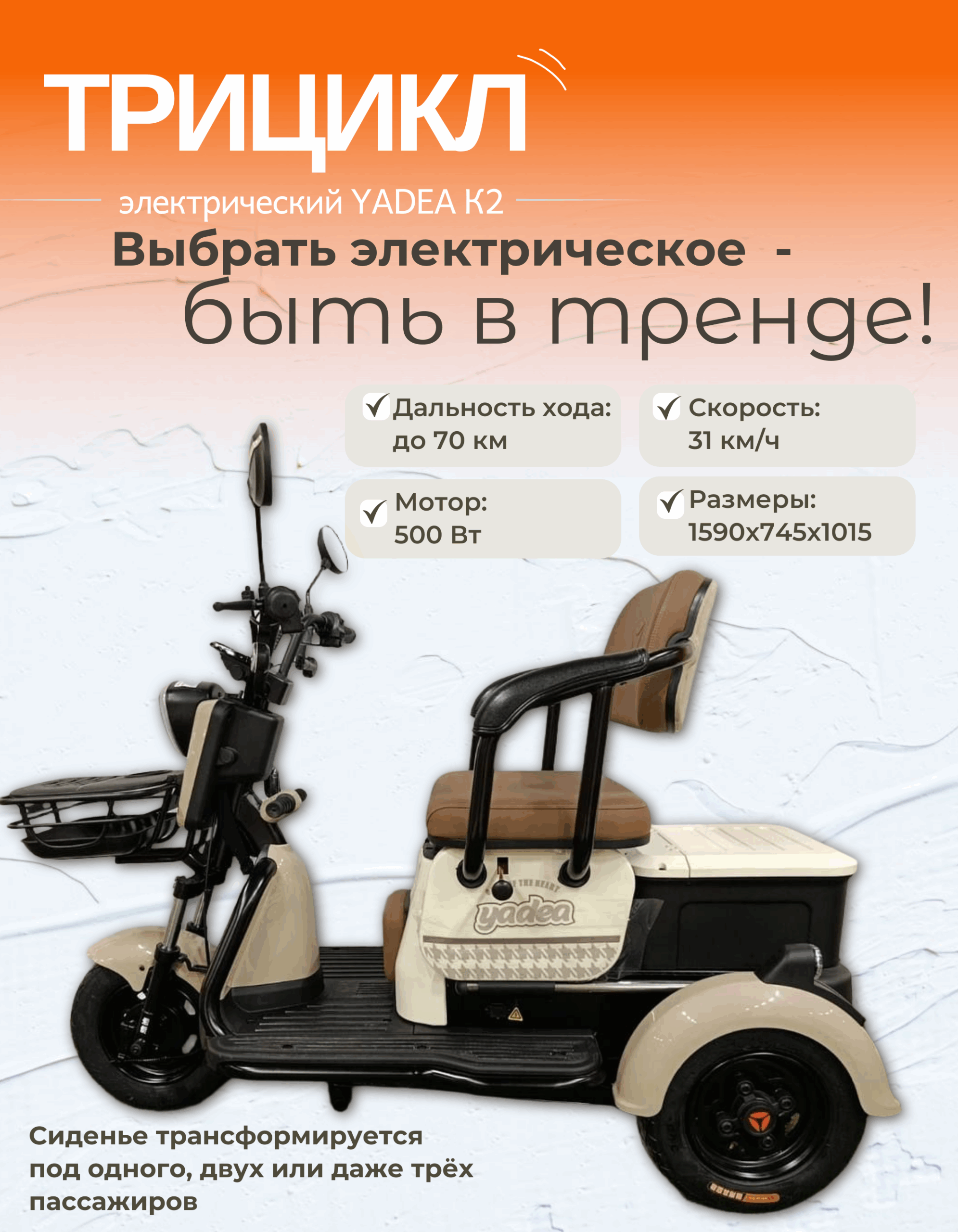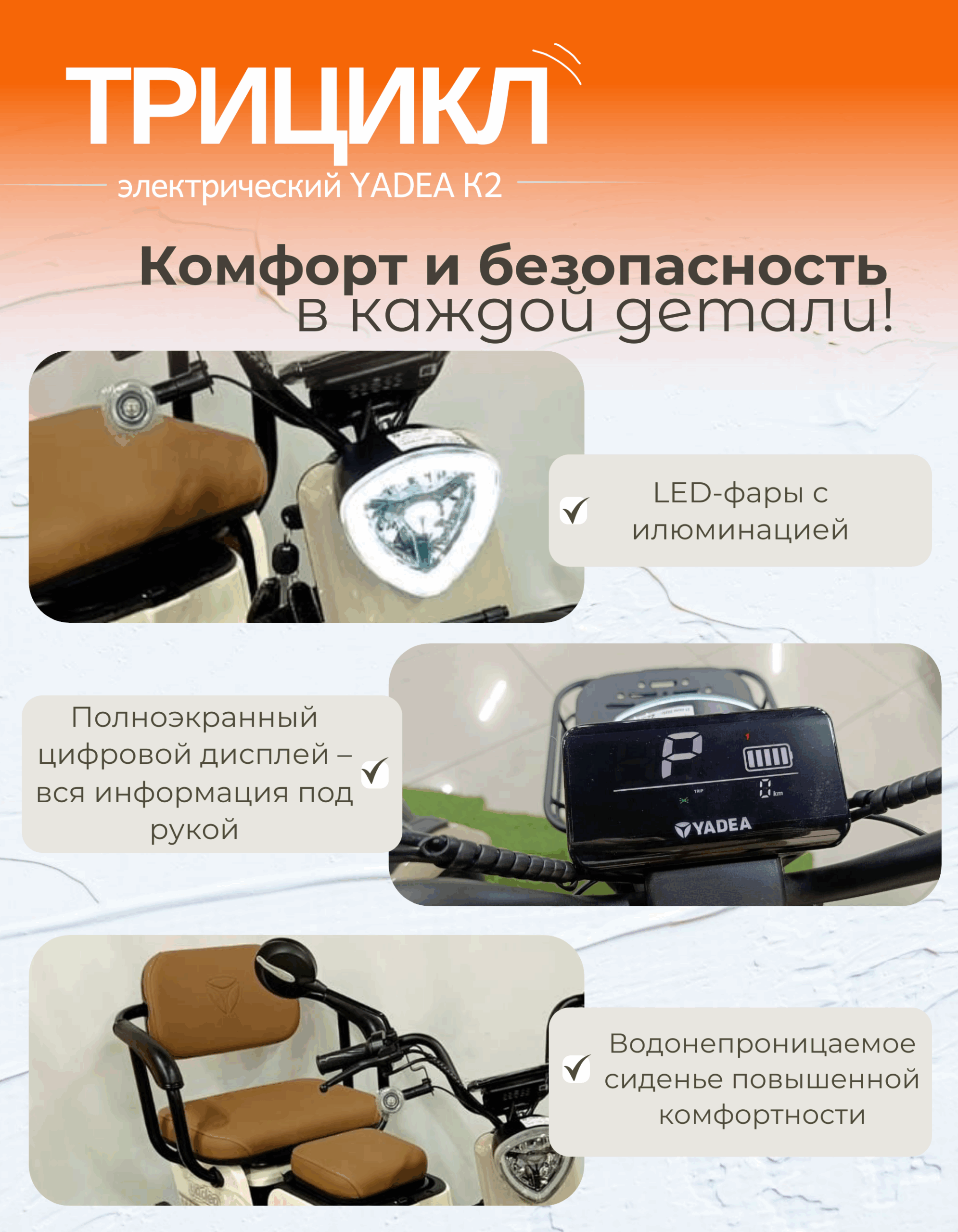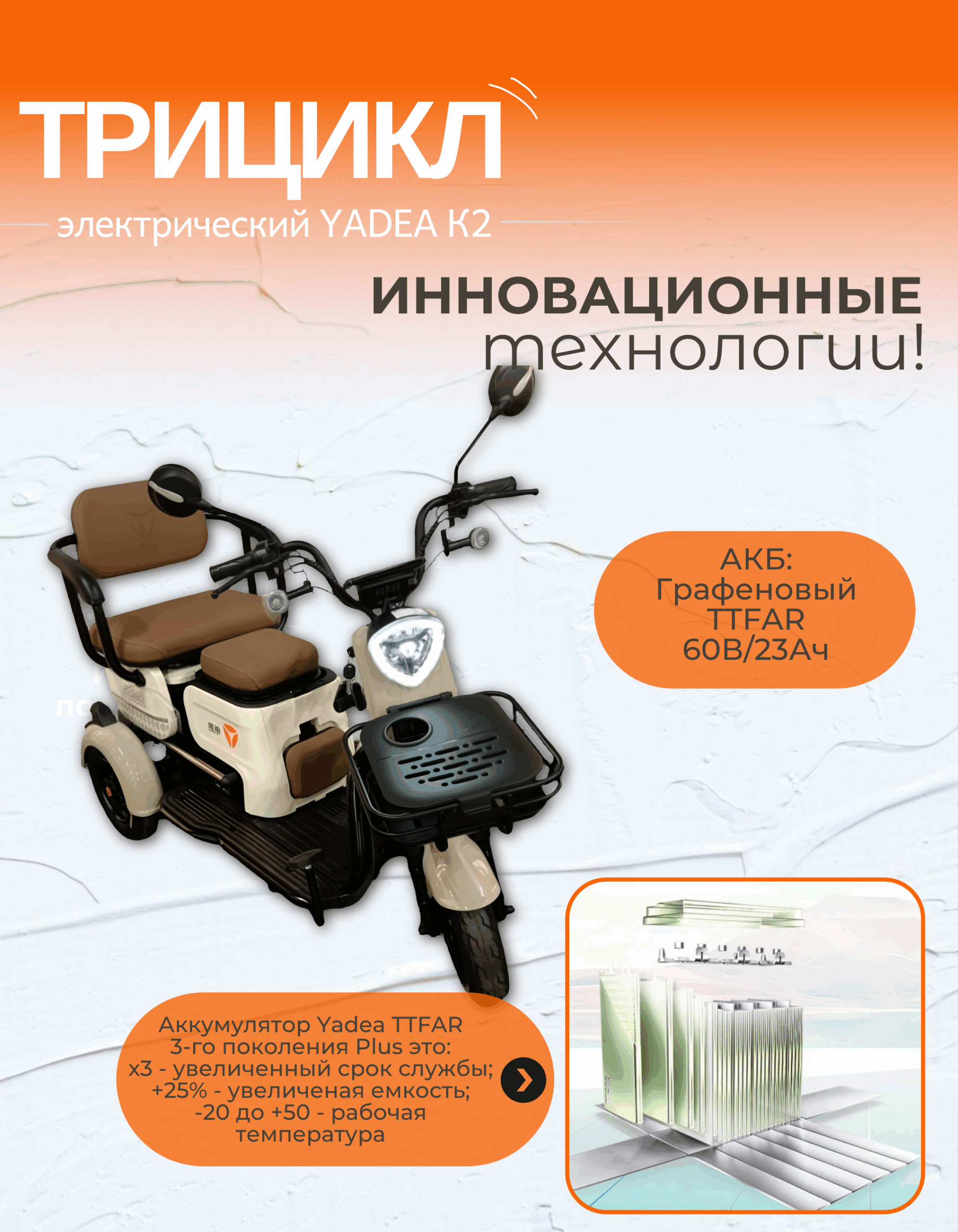 YADEA K2 – Электрический пассажирский трицикл с графеновым аккумулятором для комфортной жизни