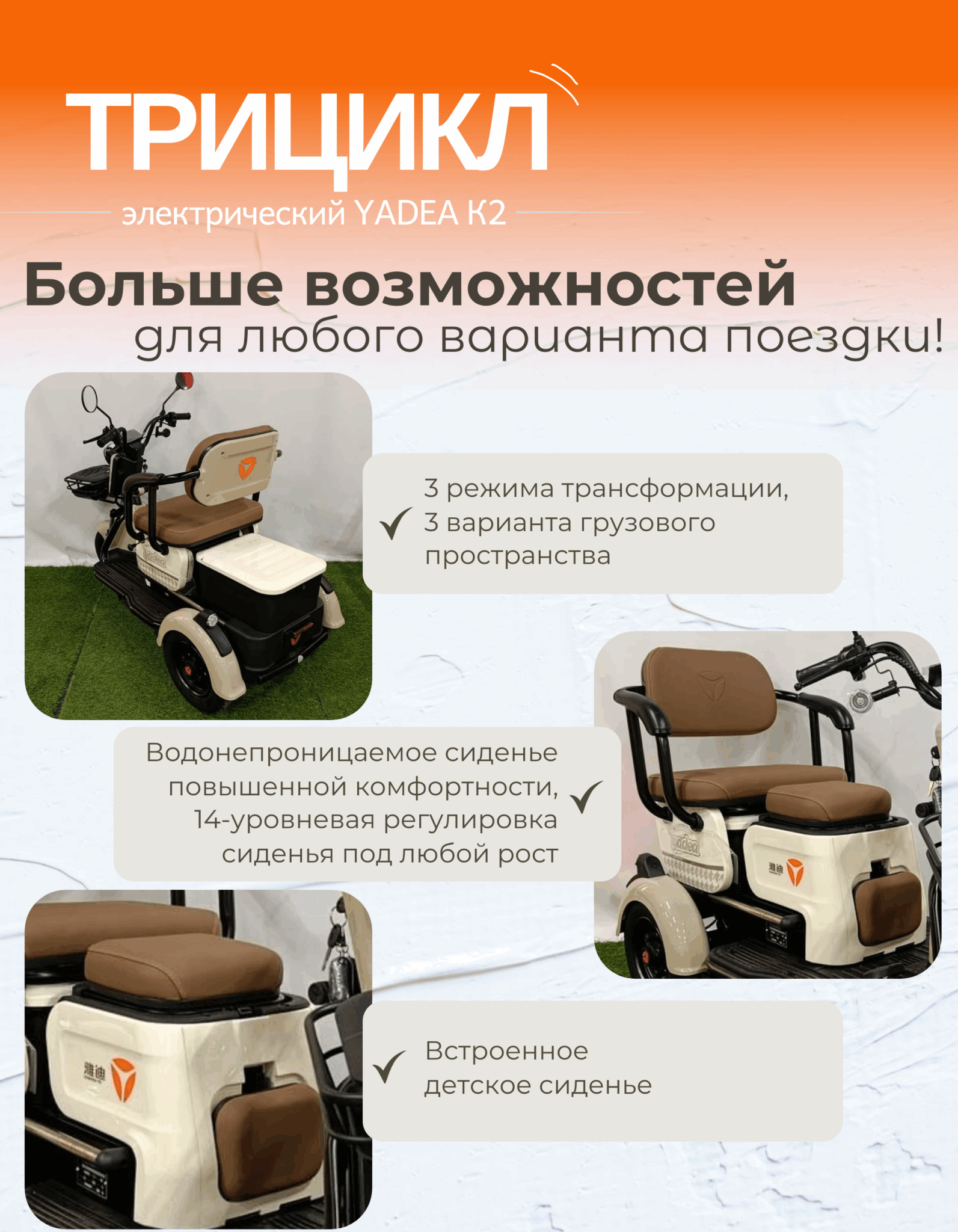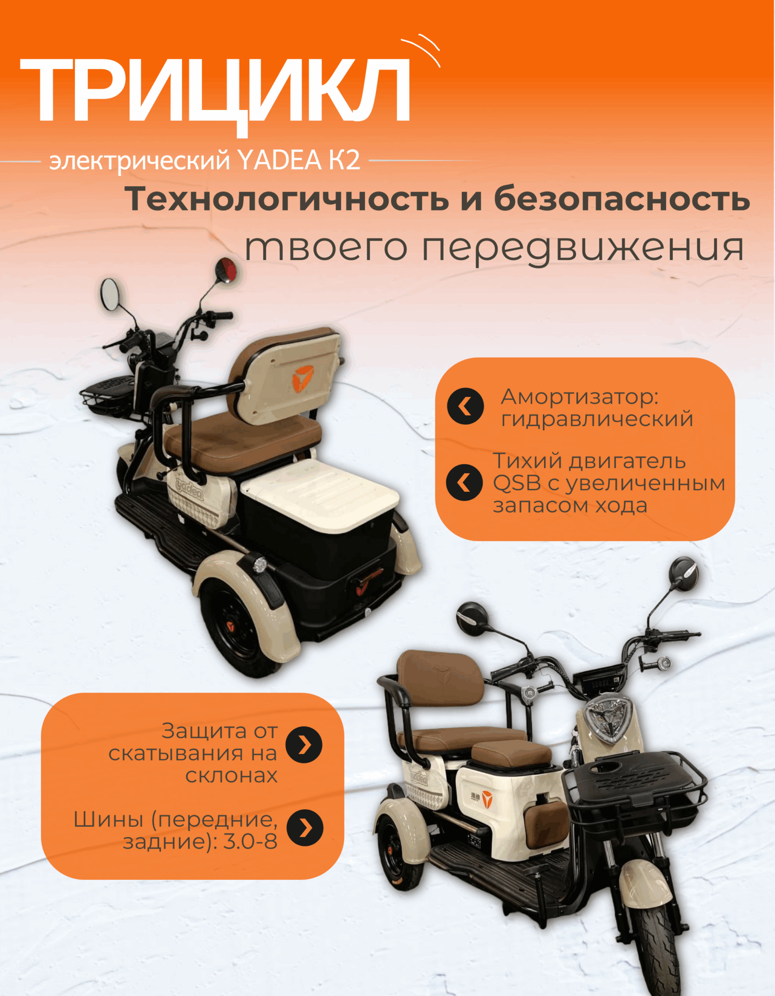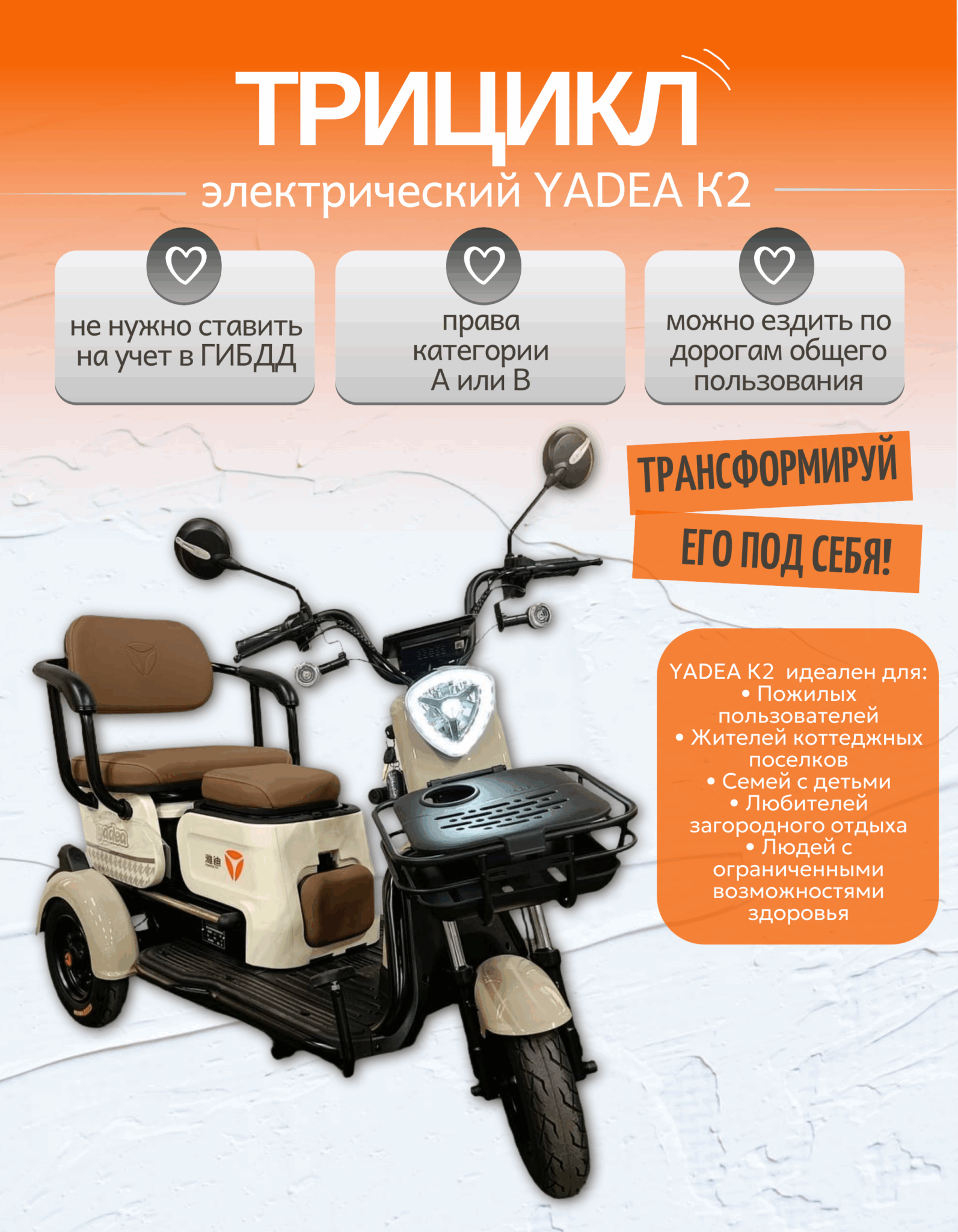 YADEA K2 – Электрический пассажирский трицикл с графеновым аккумулятором для комфортной жизни