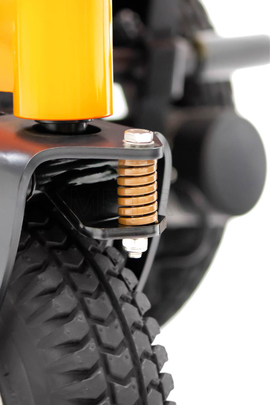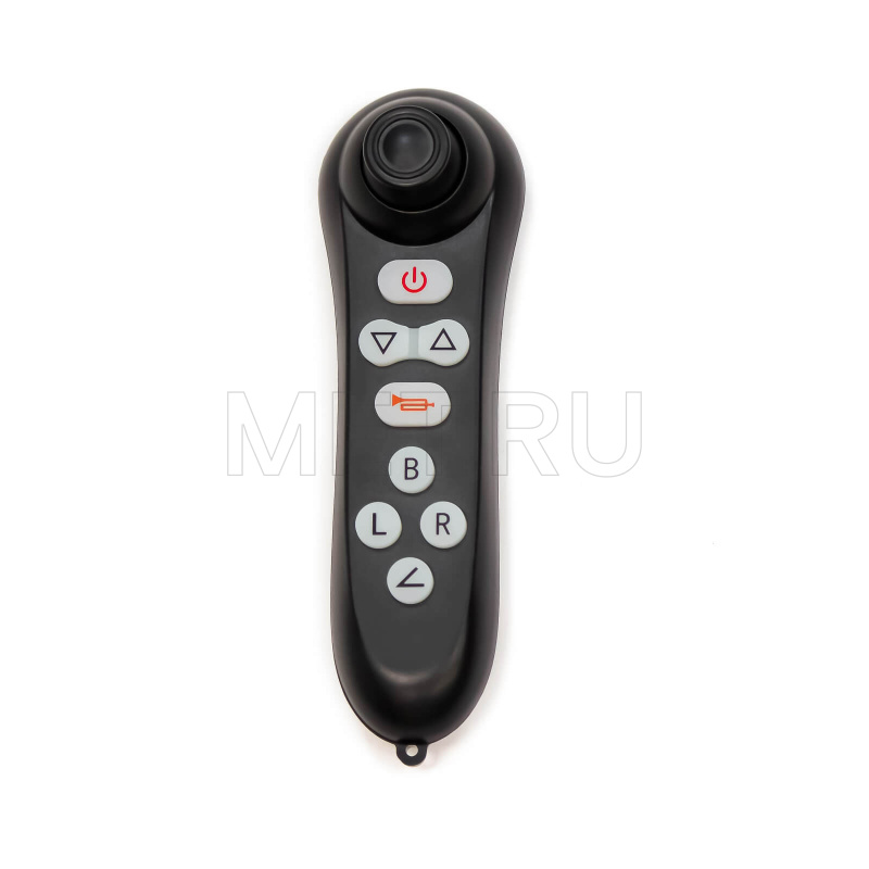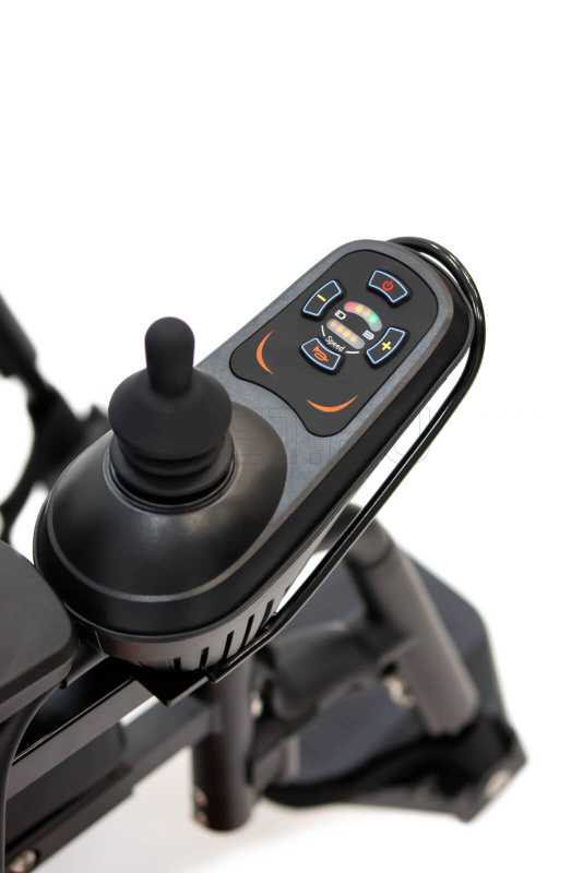 Модель оснащена антиопрокидывателями, которые делают коляску устойчивой и не дают ей перевернуться. Контроллер находится рядом с подлокотниками, и его можно установить, при необходимости, с любой удобной для пользователя стороны. На нем размещены джойстик для управления коляской, кнопка звукового сигнала, кнопка включения/выключения, кнопки регулировки скорости, а также индикатор уровня заряда. Также коляска может управляться с помощью пульта управления сопровождающим. На пульте управления можно регулировать те же функции, что и с помощью джойстика.