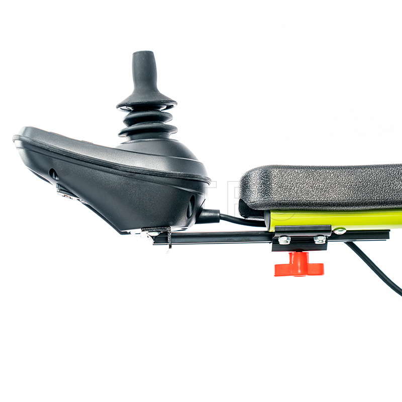 Управление коляской может осуществляться различными способами: при помощи удобного джойстика, который устанавливается под любую руку пользователя, или с помощью пульта дистанционного управления ухаживающим.