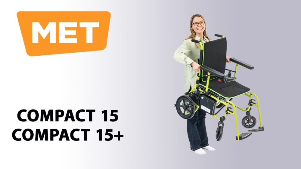 MET Compact 15 - самая легкая из существующих на рынке электрическая коляска с возможностью управления пультом дистанционного управления. Вес коляски всего 17 кг, что сопоставимо с весом обычной коляски-люльки для новорожденных детей.
