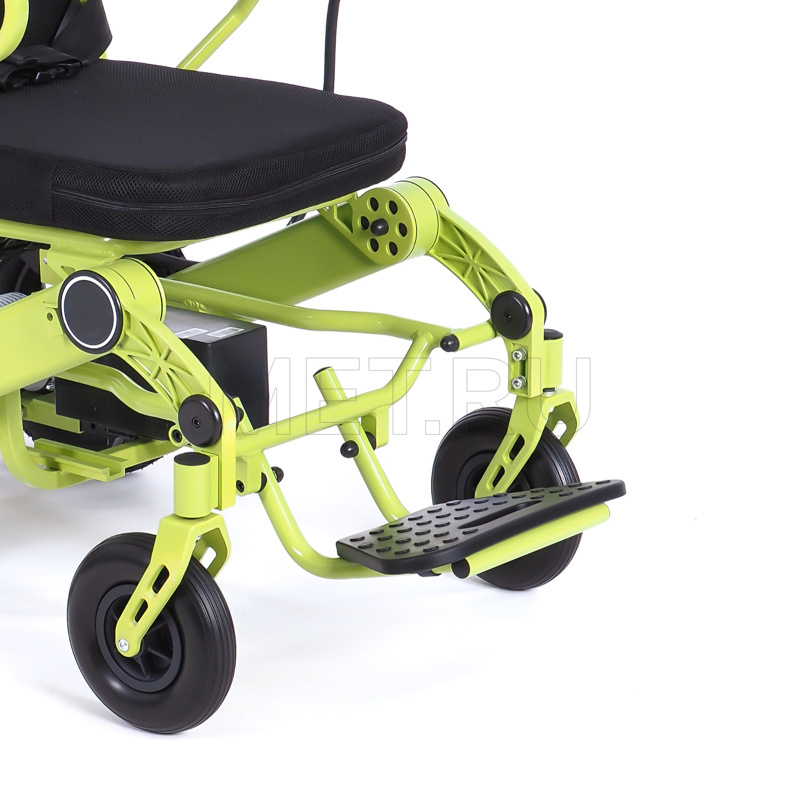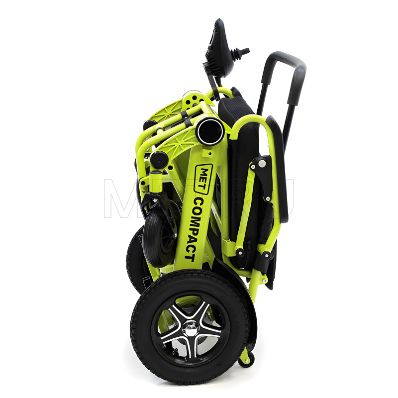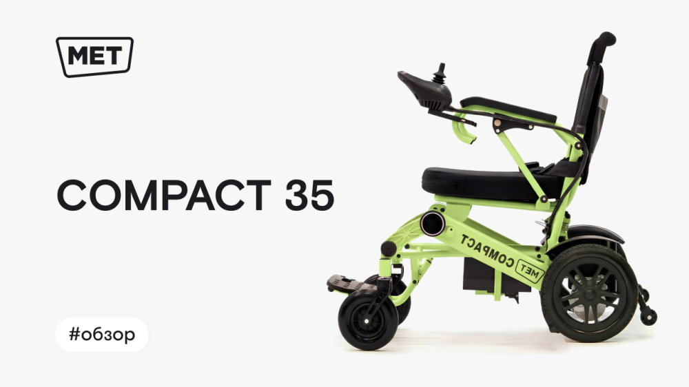 Кресло-коляска оборудовано двумя двигателями мощностью 250 Вт. Наибольшая скорость, которую развивает MET COMPACT 35, составляет 6 километров в час, а дистанция, преодолеваемая коляской на одном заряде, достигает 15 километров.