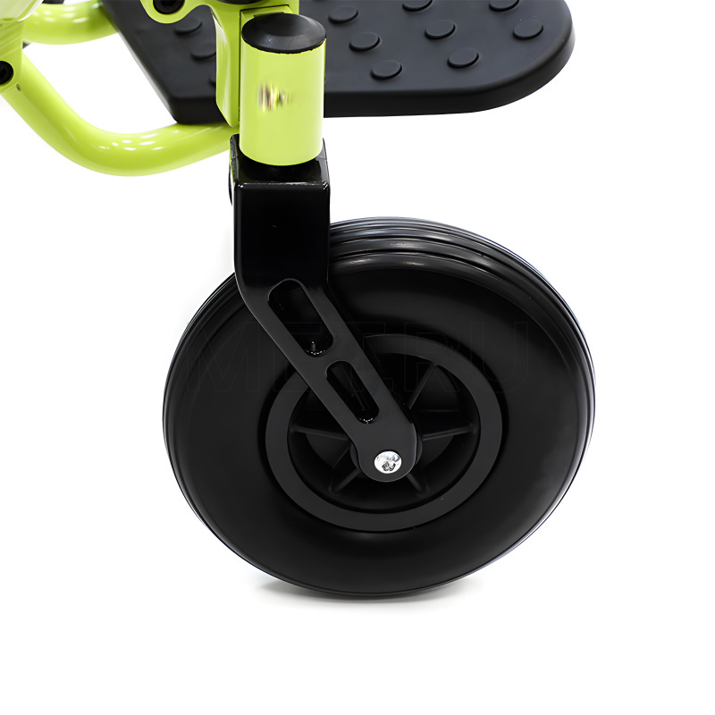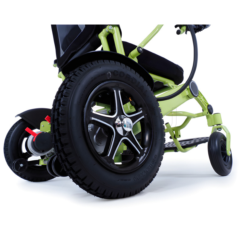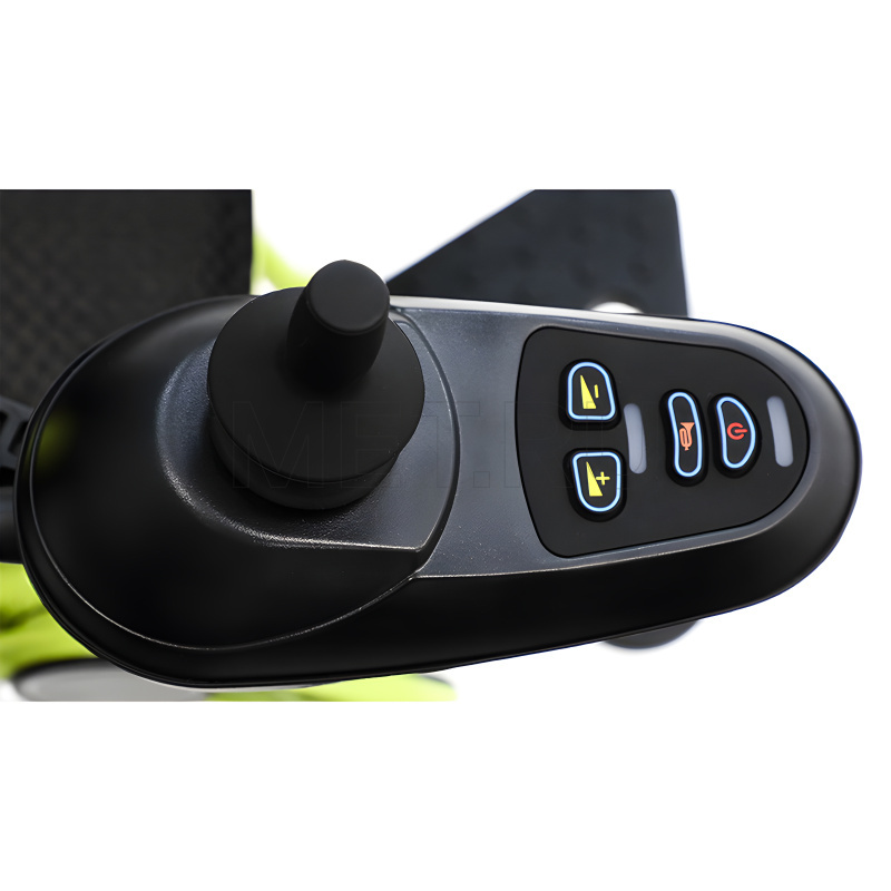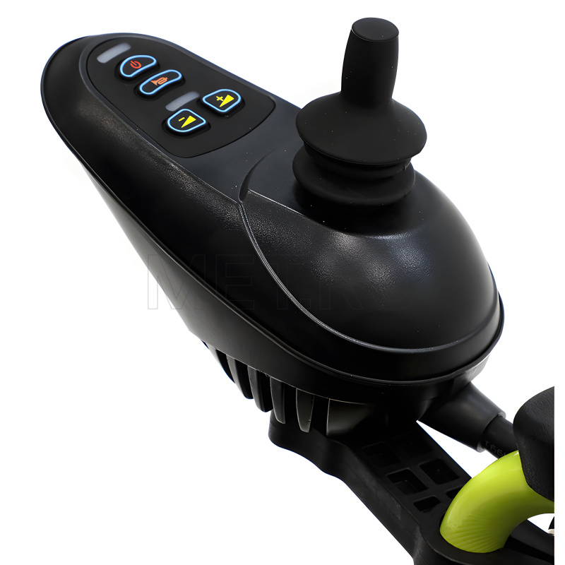 Антиопрокидыватели обеспечивают устойчивость коляски при резком старте и торможении. Управление осуществляется с помощью многофункционального контроллера (джойстик, сигнал, питание, скорость), который можно закрепить под любым подлокотником для максимального удобства.