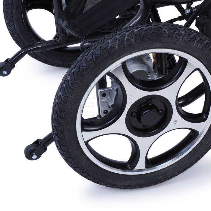 Кресло-коляска электрическая MET START 610 оборудовано задним приводом, реализованным в виде двух независимых электромоторов на безугловом редукторном соединении с ведущими колёсами. Такой тип электропривода наиболее надёжен и прост в обслуживании, так как достигается максимальная простота механических соединений.