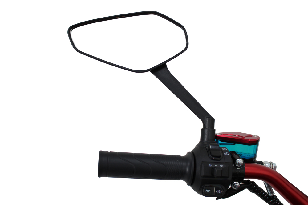 Набор аксессуаров (откидные подножки, зеркала, фара, поворотники, стоп‑сигнал, звуковой сигнал) делает электромотоцикл полностью готовым к эксплуатации в любой транспортной среде. Откидные подножки облегчают посадку и выход, а зеркала гарантируют полную видимость вокруг, повышая безопасность в городском трафике.