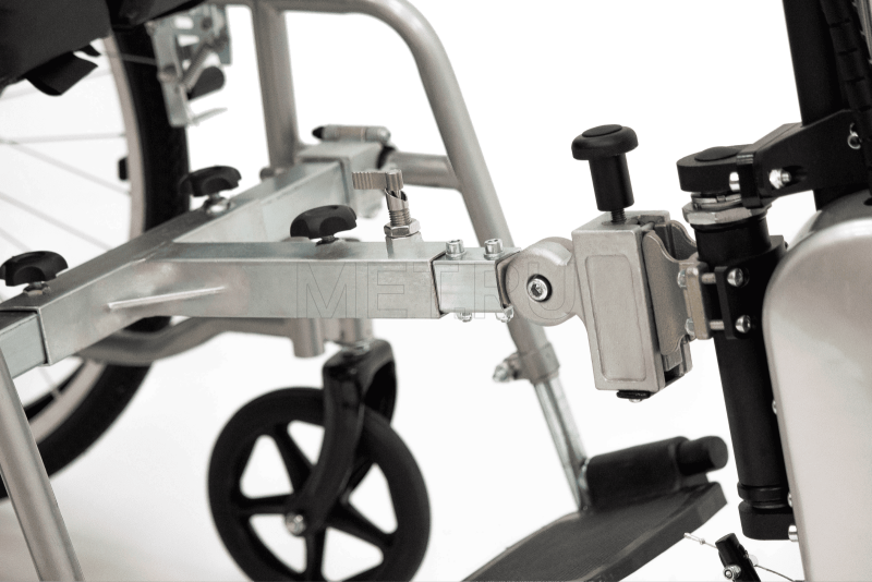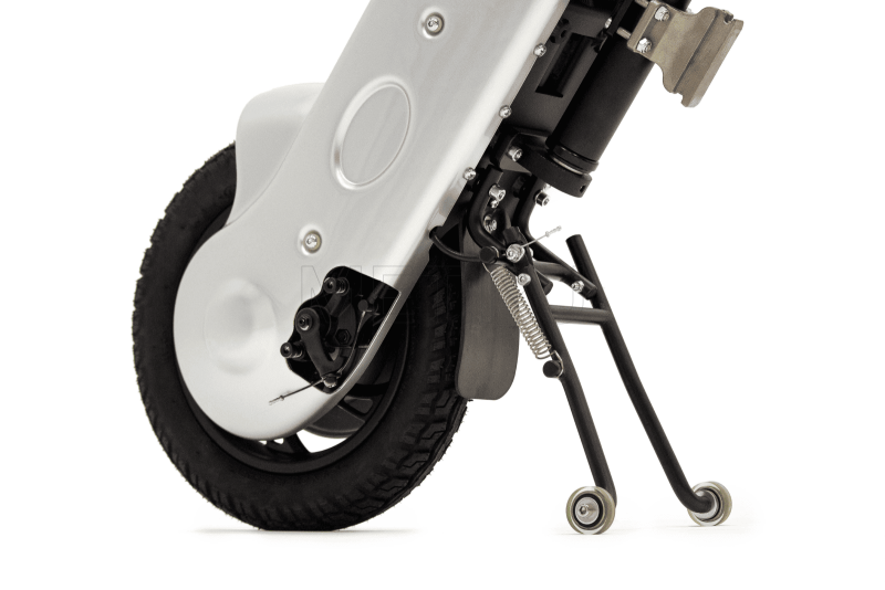 - Быстросъемное крепление к передку механического кресла-коляски позволяет снимать мото-колесо с конструкции, не сходя с кресла.