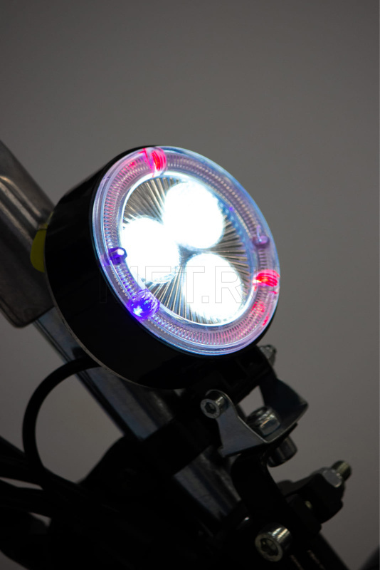 - Диодная фара мощностью 15 Вт (100W в пересчёте на лампы накаливания) позволяет совершать безопасные поездки в вечернее время.