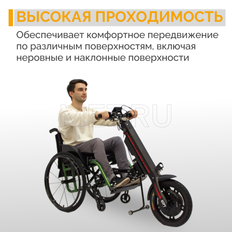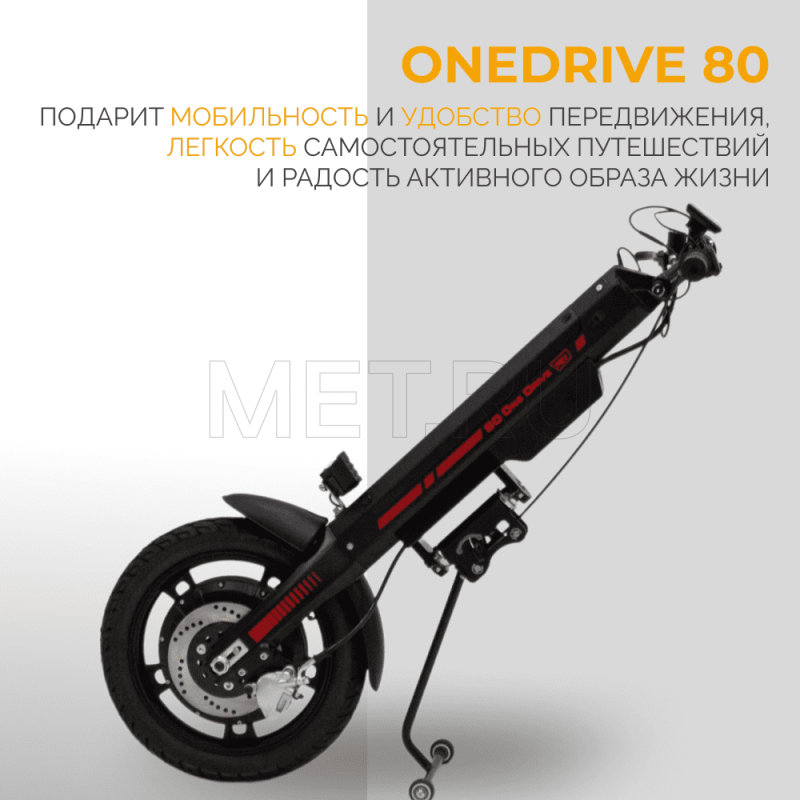 Электроприставка OneDrive 80 подарит мобильность и удобство передвижения, легкость самостоятельных путешествий и радость активного образа жизни. Моторизированное колесо OneDrive 80 подходит для большинства инвалидных колясок с ручным управлением, благодаря специальной системе крепления к подножкам. Монтаж и демонтаж электроприставки занимают считанные минуты, не требуя посторонней помощи.