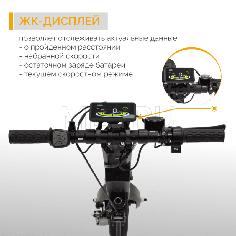 Усовершенствованный ЖК-дисплей позволяет отслеживать актуальные данные о пройденном расстоянии, набранной скорости, остаточном заряде батареи, текущем скоростном режиме.