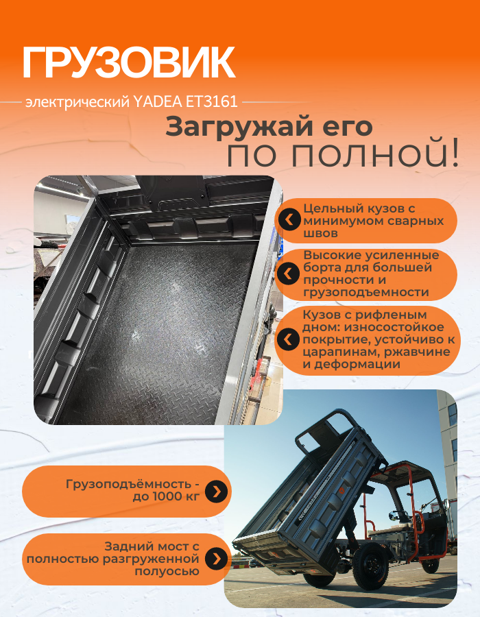Трицикл YADEA ET3161 — это готовое решение для оптимизации ваших грузоперевозок.