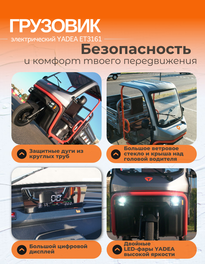 Трицикл YADEA ET3161 — это готовое решение для оптимизации ваших грузоперевозок.