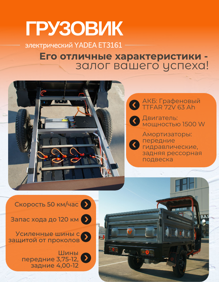 Сегодня мы представляем новинку в сегменте коммерческого электротранспорта — грузовой трицикл ET3161. Модель разработана для производств, строительных объектов, предпринимателей, курьерских служб и всех, кто ценит надежность, эффективность и экономичность.