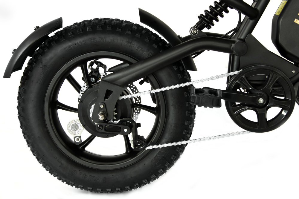 - колёса 16 дюймов с фэт-резиной помогают справляться с неровностями дорог и обеспечивают устойчивость;