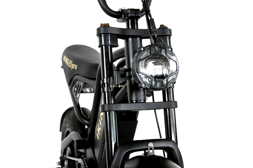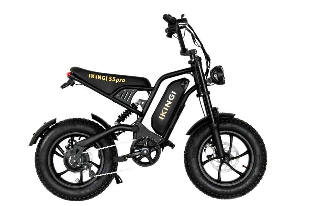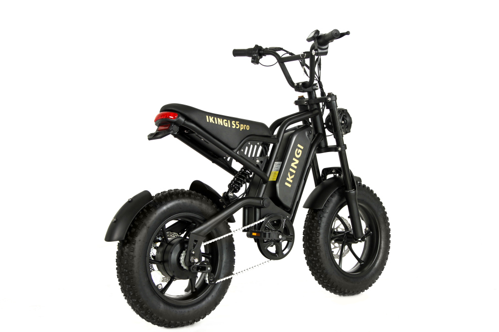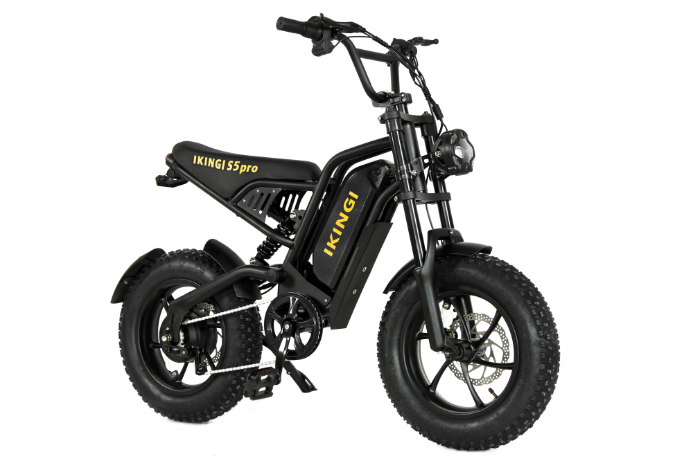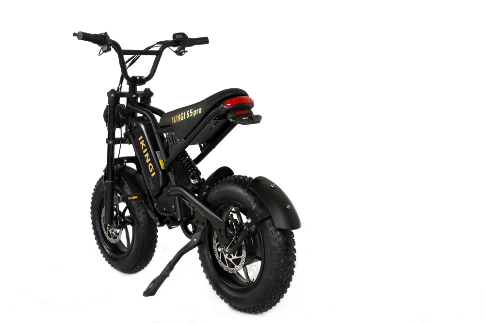 IKINGI S5 Pro Mini — компактный электровелосипед-фэтбайк для города, лёгкий и функциональный помощник в поездках. Мощность электромотора составляет 240 Вт, позволяющего развивать скорость до 45 км/ч — оптимально для безопасного и комфортного передвижения по улицам и паркам. Аккумулятор 48 В 15.8 А·ч обеспечивает запас хода до 40 км на одном заряде, время полной зарядки — около 5–6 часов.