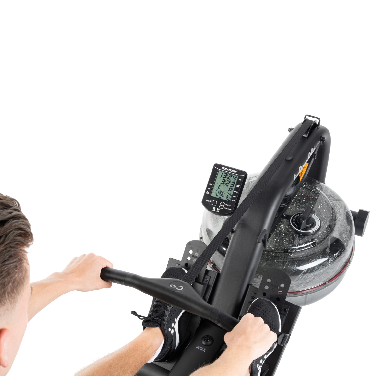 Tunturi FitRow 90i разработан с использованием запатентованной технологии двойного водного резервуара Fluid Twin Tank, что создает ощущение реальной гребли по воде. Система позволяет легко регулировать сопротивление с помощью поворотного диска, предоставляя вам полный контроль над тренировкой и возможность использовать тренажер всей семьей.