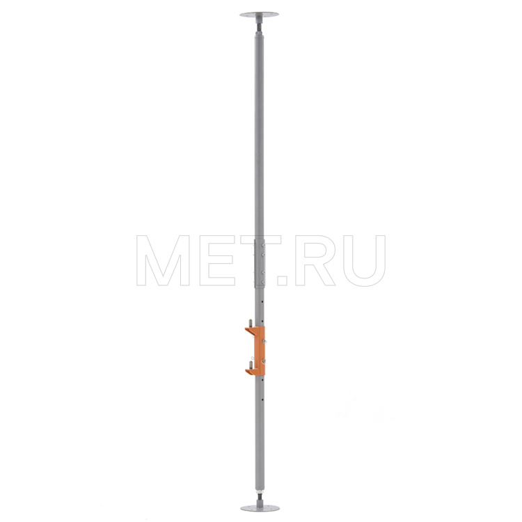 Диапазон изменения высоты 50 см. Итоговая высота зависит от используемого кронштейна, посадки в гамаке и антропометрических данных пользователя. Грузоподъемность подъемника 150 кг (без калитки удлинителя). Принципиально другая посадка в сравнении с классическими подъемниками, траверса располагается не над человеком, а в районе груди. - РАСПОРНЫЙ КРОНТЕЙН "ПОЛ-ПОТОЛОК" предназначен для помещений, где несущая способность стены не позволяет установить настенное крепление (Пеноблоки, гипсокартон и пр.) Распорка состоит из двух частей, соединительной муфты, и регулируемой по высоте основы подъемника. Кронштейн устанавливается в распор между полом и потолком путем выкручивания одного или двух (при необходимости) винтов, после чего фиксируется сверху и снизу к полу и потолку.* Кронштейн подходит для потолков высотой 244-307 см.