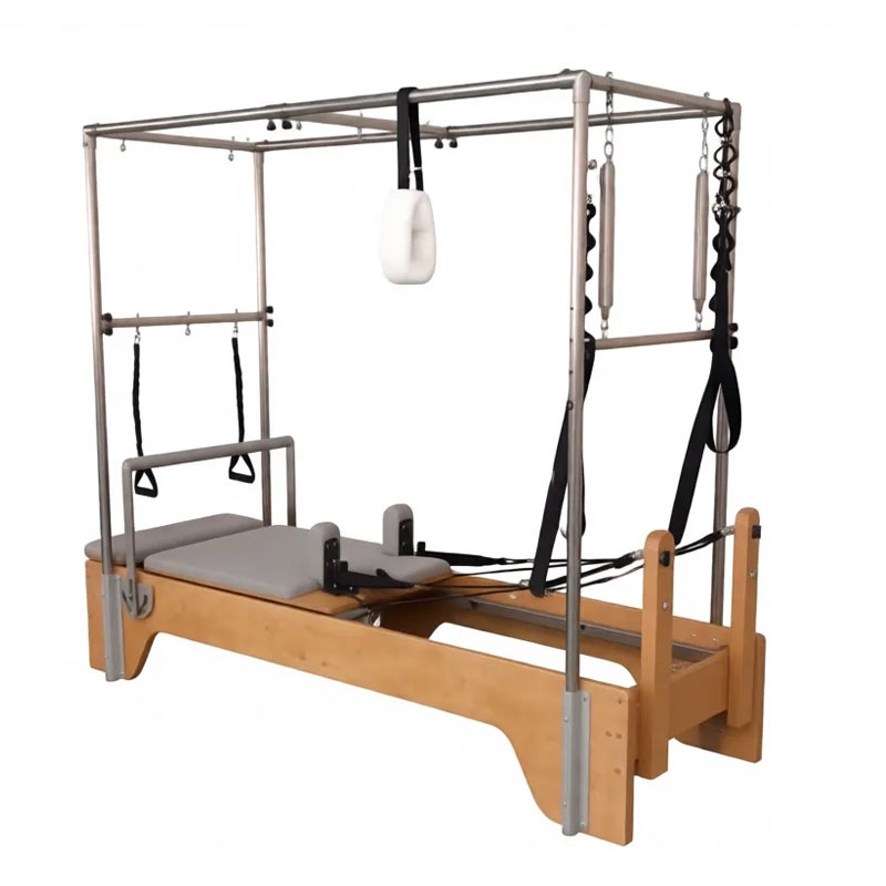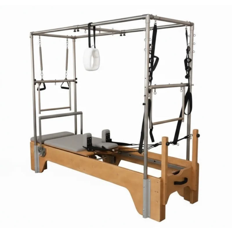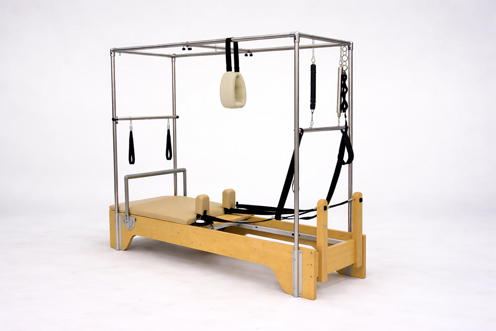 Студийный Реформер «Кадиллак 3в1» объединяет два типа оборудования, обеспечивая максимальное разнообразие упражнений. Компактное решение для небольших студий, идеально подходит для групповых занятий пилатес. Легко преобразуется из Реформера в Стол: достаточно установить жесткую удлиняющую платформу.
