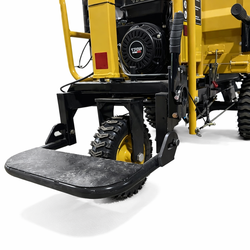 На мототележке WIKDO LMY-500S-ZJ в качестве движителей установлены пневматические шины с мощными грунтозацепами позволяющие перевозку груза в сложных условиях. Использование шин делает мототележку универсальной для различных дорожных условий. Управление данной машиной простое, легкое и интуитивно понятное, что подтверждается интересом со стороны женщин, именно они часто выбирают под себя технику WIKDO. Рулевая поворотная стойка и опорная складная платформа позволяют оператору передвигаться как на самой тележке, что удобно для дальних расстояний, так и двигаться рядом, когда это требуется при сложных дорожных условиях. Для начала движения, оператор включает зажигание, заводит двигатель, выбирает нужную передачу и поворачивая курок газа начинает плавное движение в выбранном направлении. Все узлы и агрегаты мототележки проверены и смазаны. Проведены необходимые регулировки и настройки. Мототележка полностью готова к работе. Рекомендуем первоначально соблюдать режим обкатки двигателя. Вся необходимая техническая и справочная информация размещена на сайте Wikdo.ru в описание каждой модели. Мы ставим на первое место комфортную и безопасную работу с техникой WIKDO и поэтому в стандартную комплектацию мы включили защищенный аккумуляторный ящик, защитную рамку двигателя и ручной тормоз. Также мы установили необходимые информационные таблички и светоотражающие элементы.