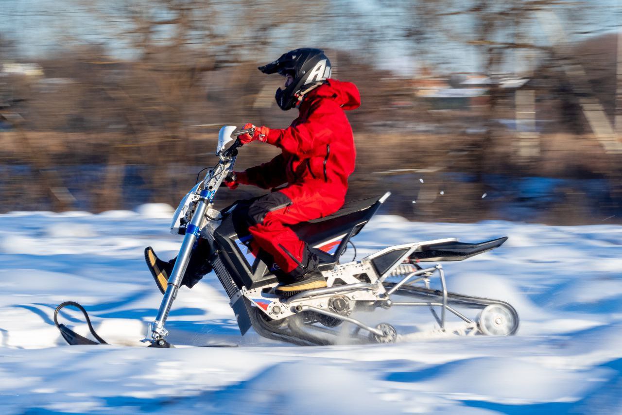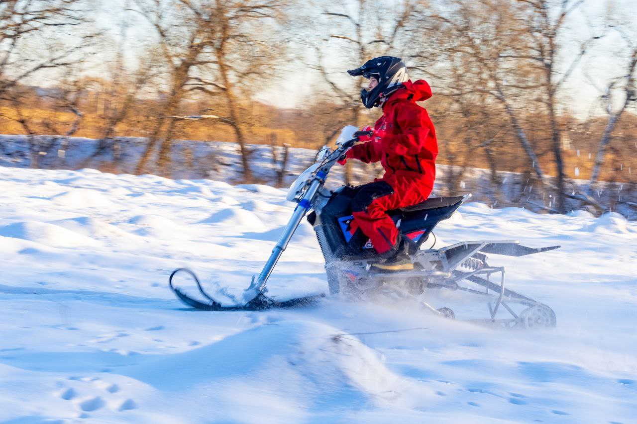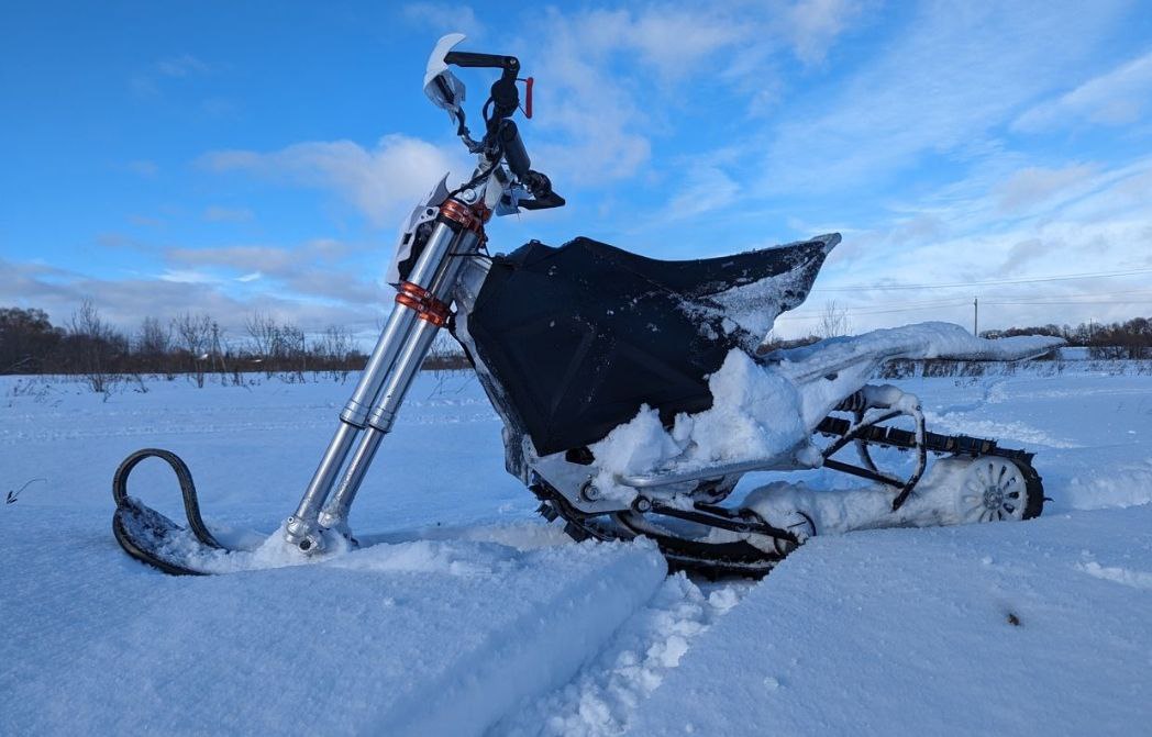 Снегирь 2500 представляет собой легкий снегоход с электрическим двигателем, демонстрирующий маневренность и динамику, сопоставимые со спортивными мотоциклами.