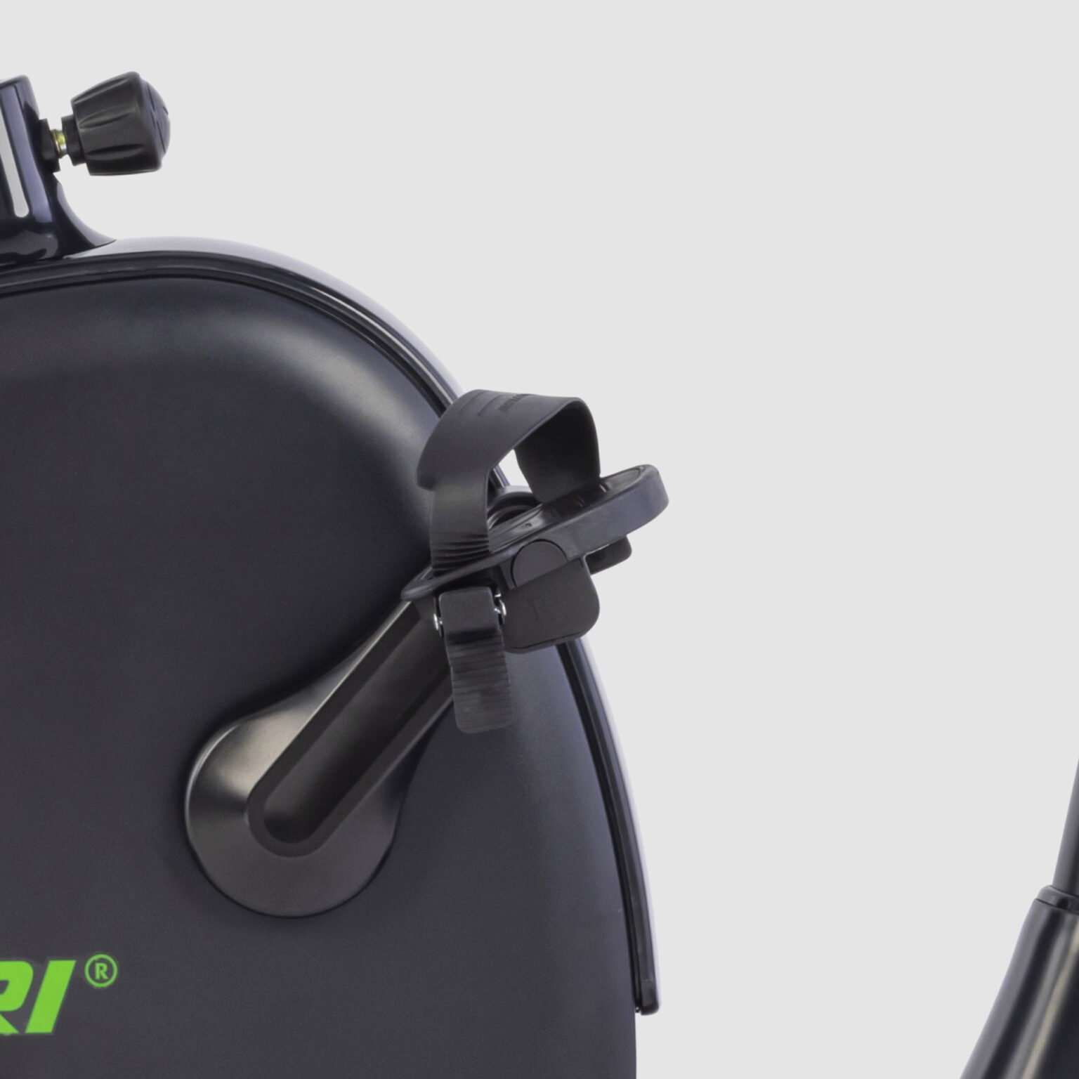 Велотренажер оснащен регулируемыми ножками, которые позволяют стабилизировать его на неровной поверхности. Высоту каждой ножки можно подстроить в зависимости от особенностей пола или поверхности, на которой размещен тренажер. Это обеспечивает устойчивость и предотвращает шатание во время тренировки, гарантируя безопасность и комфорт. Дополнительное пространство между стойкой руля и корпусом облегчает посадку, делая тренажер доступным и безопасным для всех пользователей. Входить и выходить легко и безопасно, а две ручки обеспечивают дополнительную поддержку. Это делает велотренажер Tunturi Signature E80 идеальным для реабилитации.